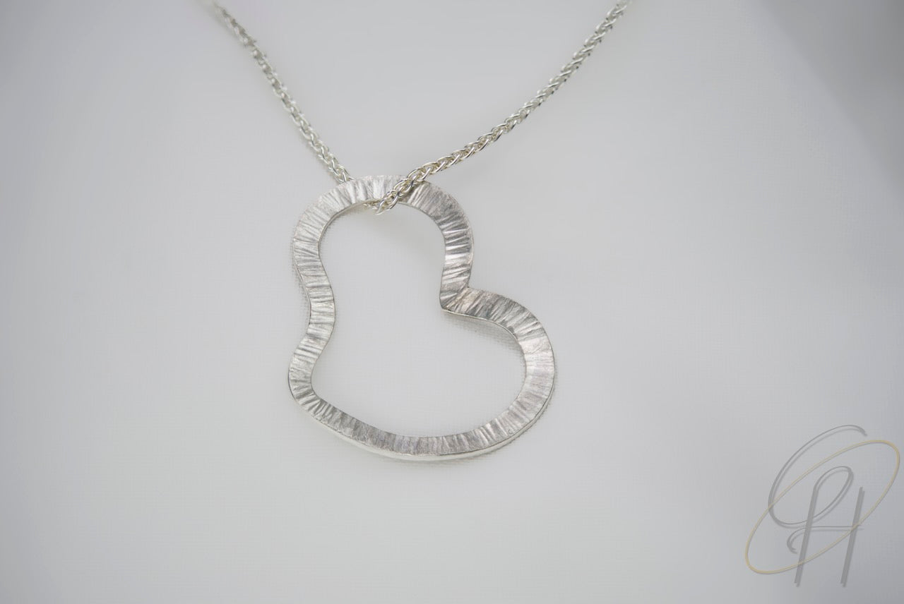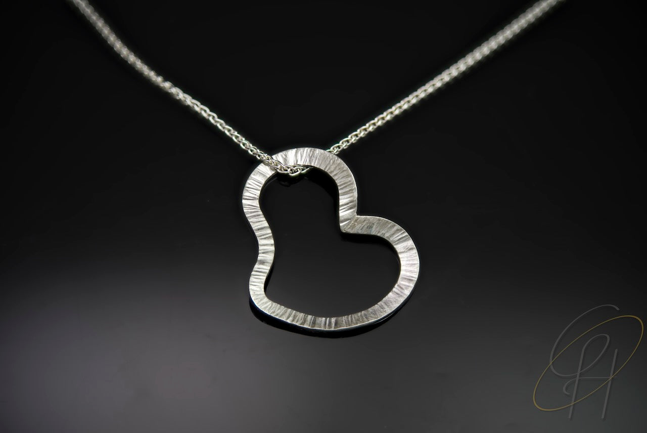 Dieser Herzanhänger ist in 925er Silber handgeschmiedet, gebürstet. 36x28mm