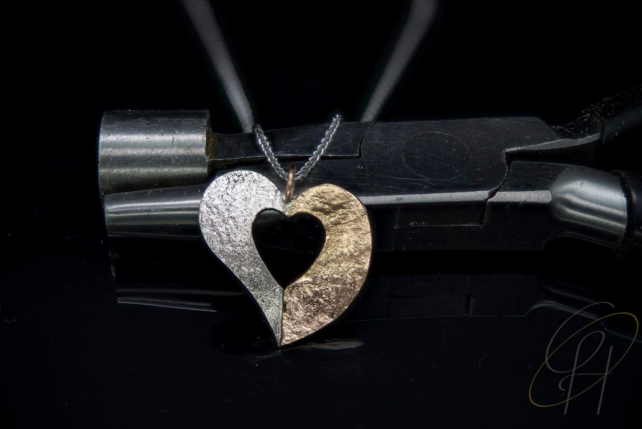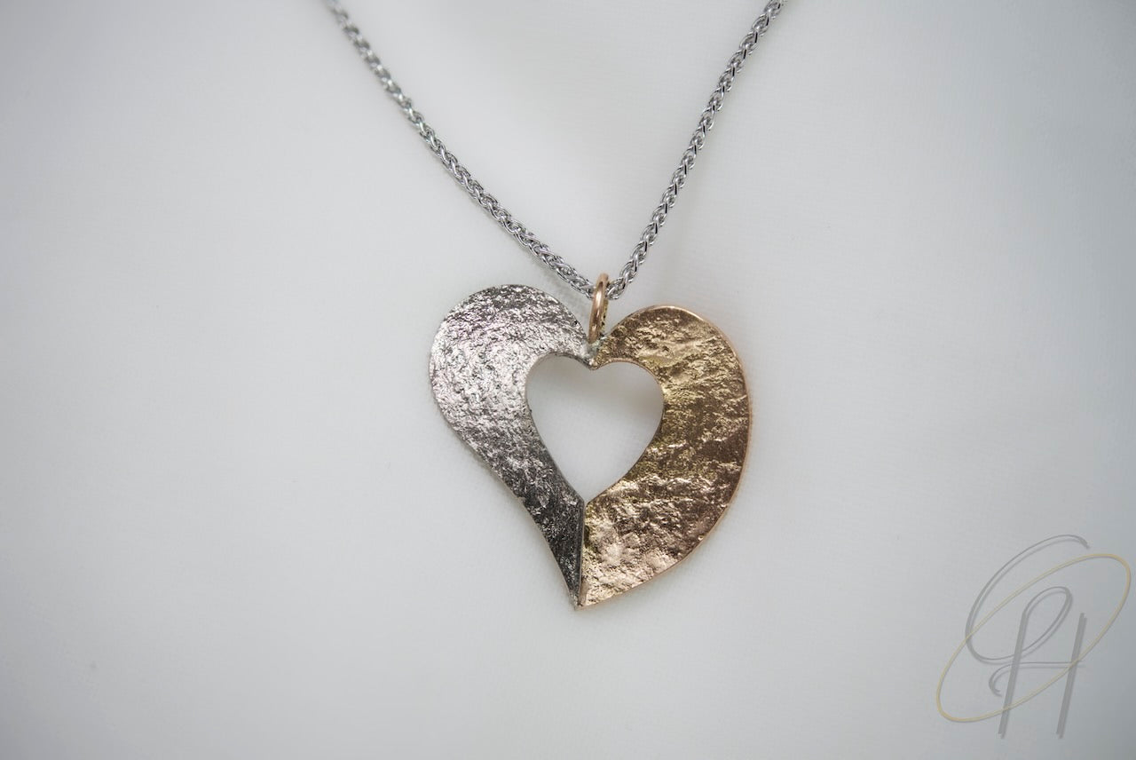 Herzanhänger in Weiss- und Rotgold 750 strukturierte, bewegte Oberfläche
