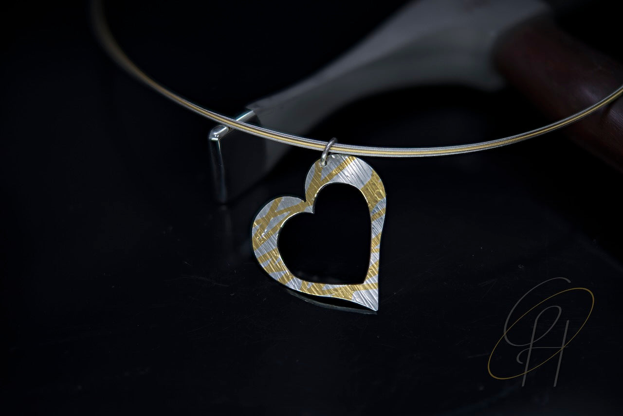Herz Anhänger handgeschmiedet in der koreanischen Technik KeumBoo in Silber mit Feingold (Das Halsband ist nicht im Preis inbegriffen)