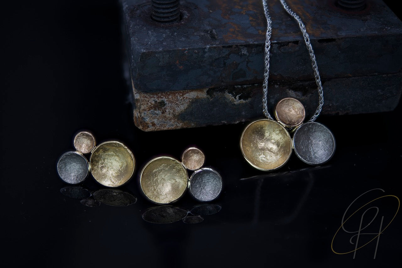 Ein feines Schmuck-Set bestehend aus Anhänger und Ohrstecker (auch einzeln erhältlich) in 18 Karat Gelb-, Weiss- und Rotgold. Profitieren Sie von 10% Preisvorteil gegenüber dem Einzelpreis!