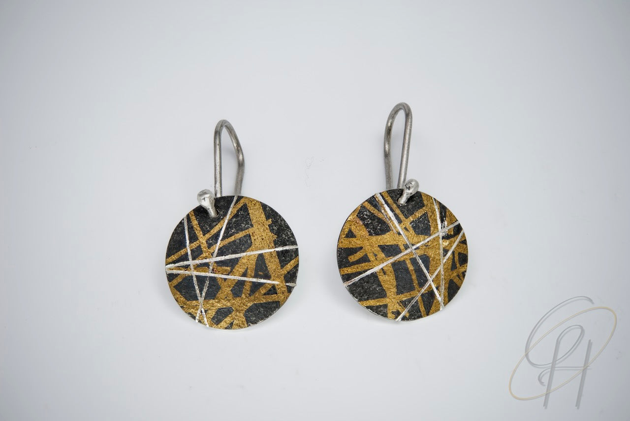 Ohrhänger in der koreanischen Technik KeumBoo gefertigt in geschwärztem Silber und Feingold
